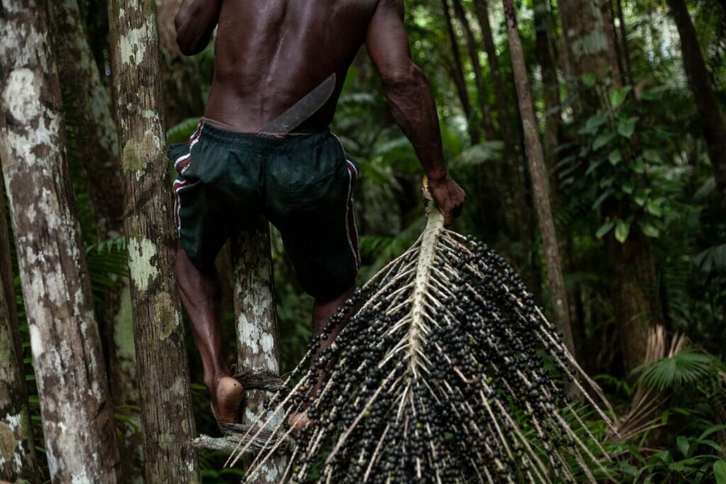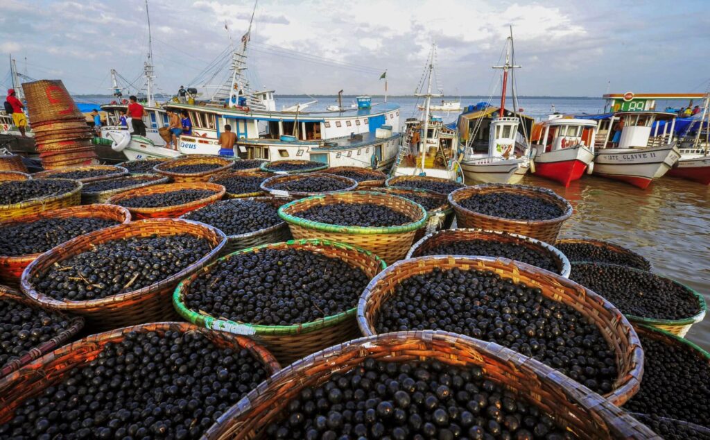 O açaí é colhido de forma sustentável por comunidades locais, respeitando o tempo da natureza.